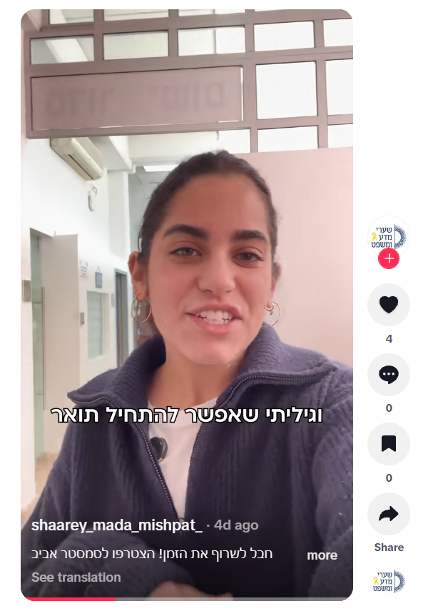 בוגרת מכינה ובעלת תואר ראשון במדיניות ציבורית